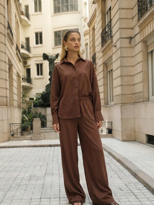 Cuidados: Lavar con agua fría y jabón neutro ayudará a mantener el color, la forma y estructura del textil.La modelo usa un talle 1 en color marron.