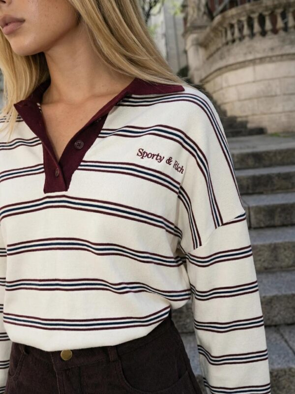 $24,000Descripción: Chomba de cuello solapa con botones delanteros. Mangas largas. Detalle de bordado delantero combinado a tono.