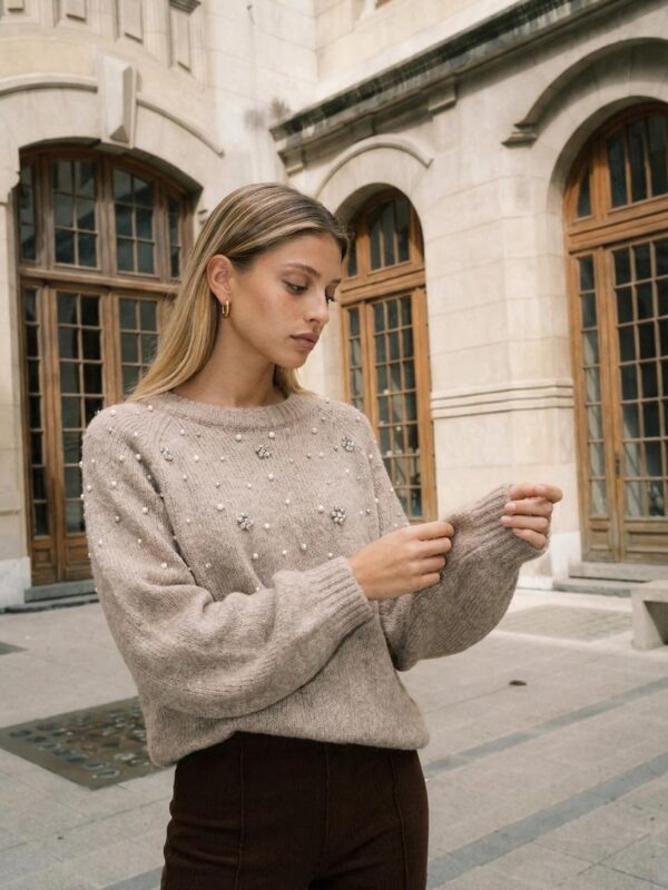 $36,000Descripción: Sweater de cuello redondo. Mangas largas terminadas en puño. Detalle de perlas y strass.