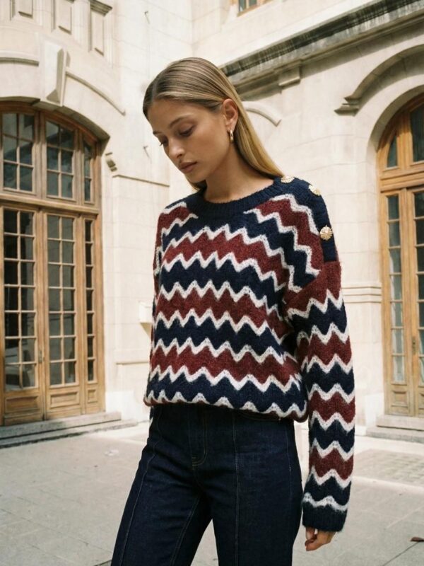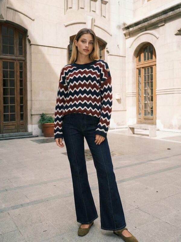 $37,500Descripción: Sweater de cuello redondo y mangas largas. Detalle de zigzag. Botones dorados en lateral.