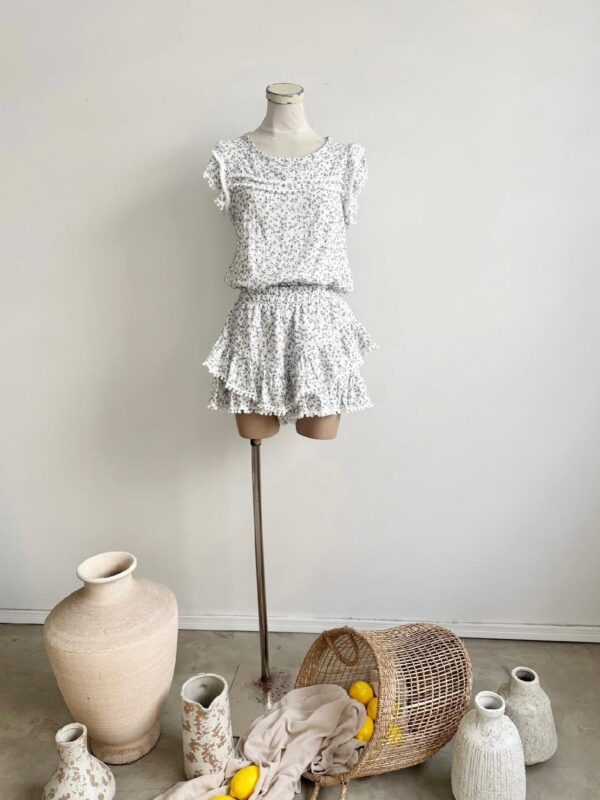 $23,000$11,500Descripción: Mini corta con detalle de volados y bajo terminado en puntilla.