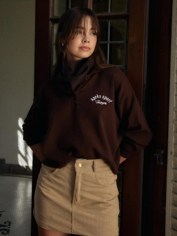 Cuidados: Lavar con agua fría y jabón neutro ayudará a mantener el color, la forma y estructura del textil.La modelo usa un talle 1 en color marron.