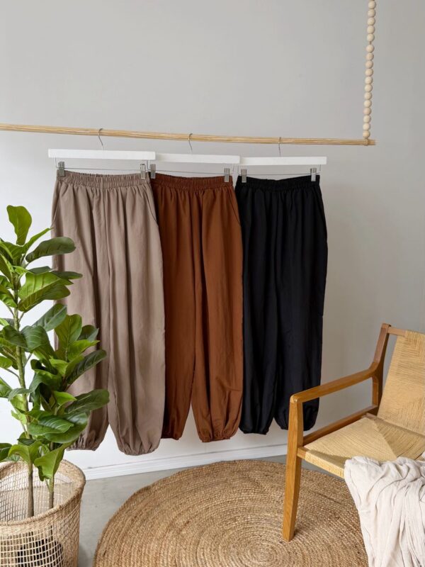 Descripcion: Pantalón corte aladdin amplio, con elastco en la cintura y en los puños.