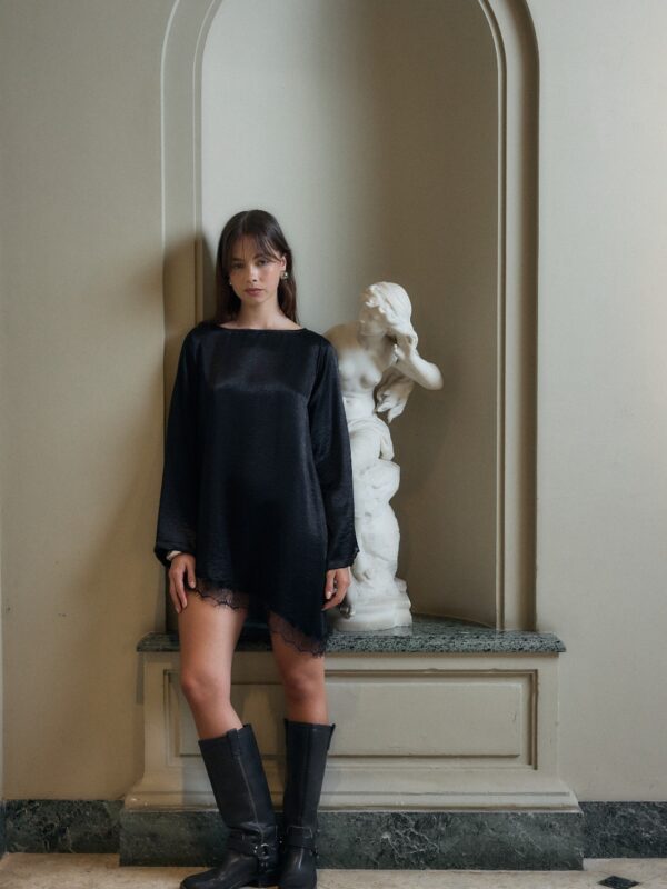 Descripcion: Vestido con puntilla en el ruedo y mangas amplias.