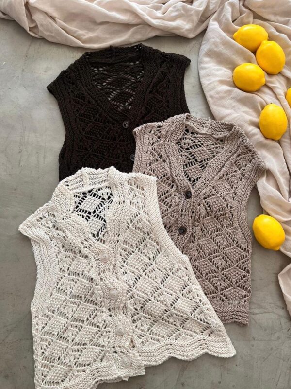 $15,000Descripción: Chaleco escote pico. Botones delanteros. Manga sisa.