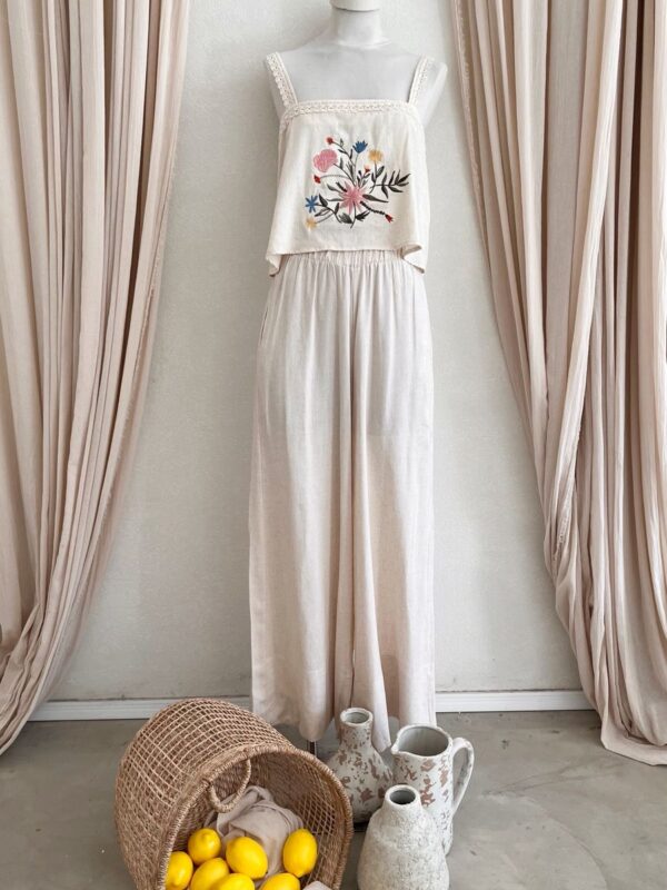 $17,500Descripción: Top de escote recto y tirantes finos. Detalle de puntilla. Bordado en delantero.