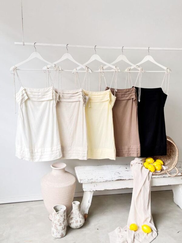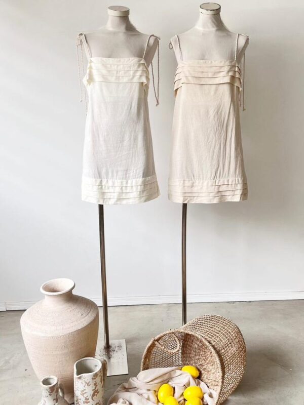 $18,000Descripción: vestido corto con tiras regulables para atar. Forro interior en busto.