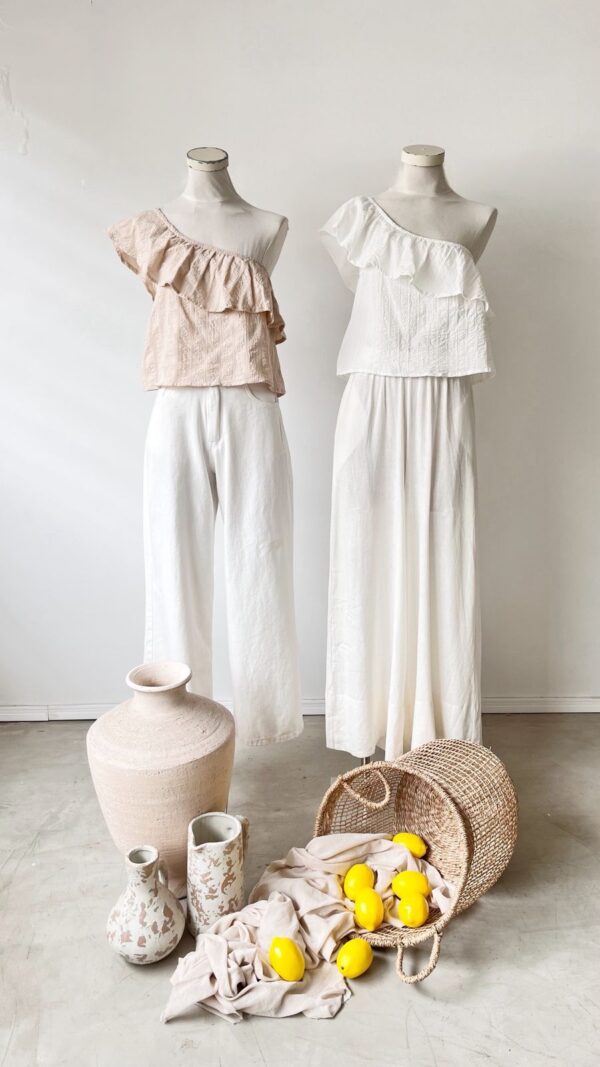 Descripción: Blusa de un solo hombro con detalle de volado del mismo textil.