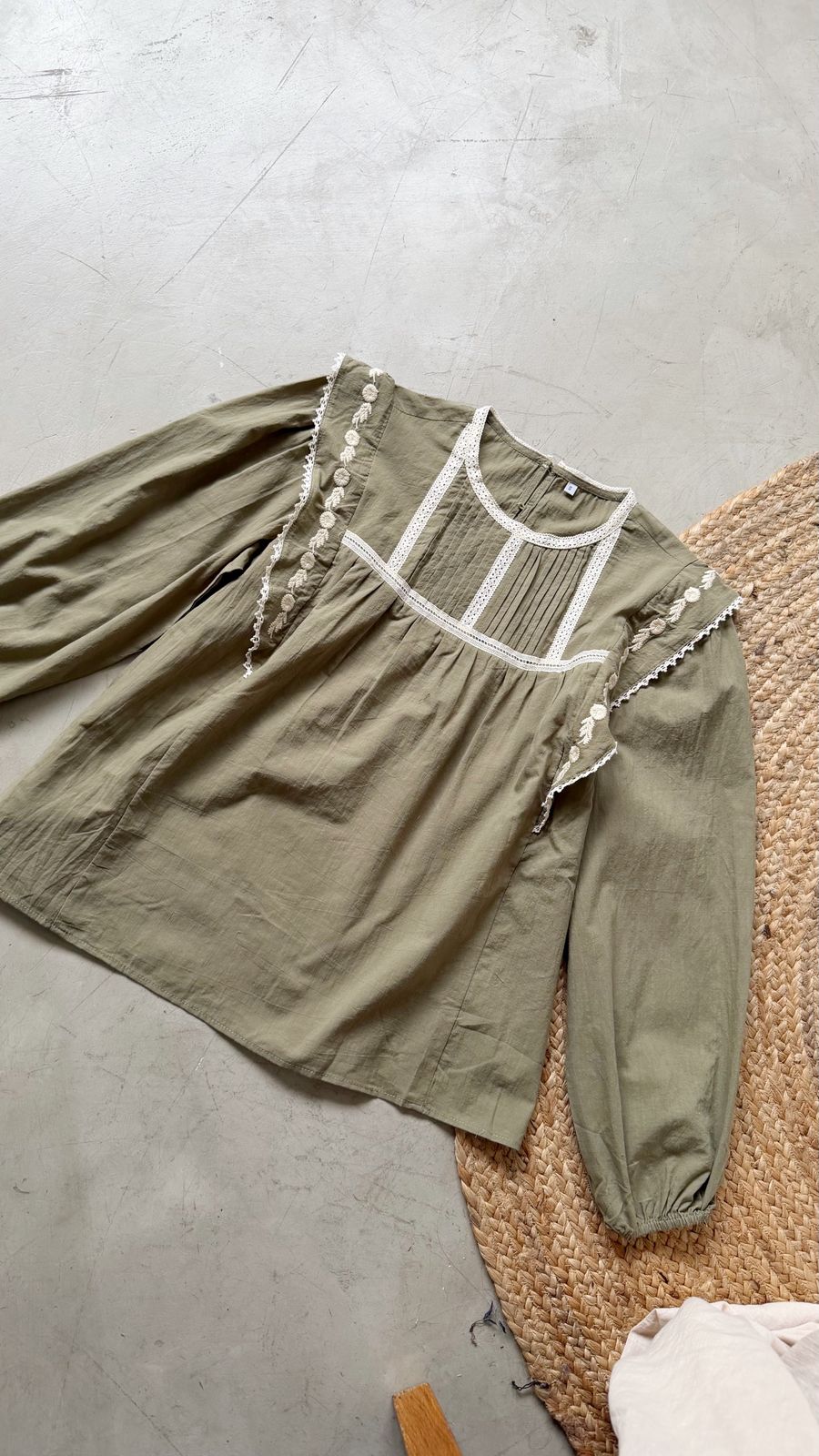 Descripcion: blusa con puntilla y volado.