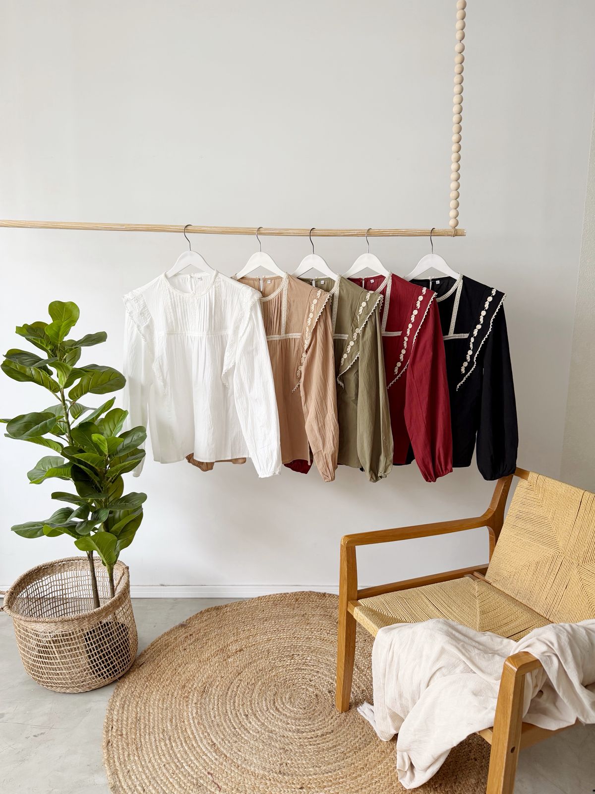 Descripción: Blusa con cuello redondo. Mandas largar terminadas en elástico. Detalle de puntilla y bordado.