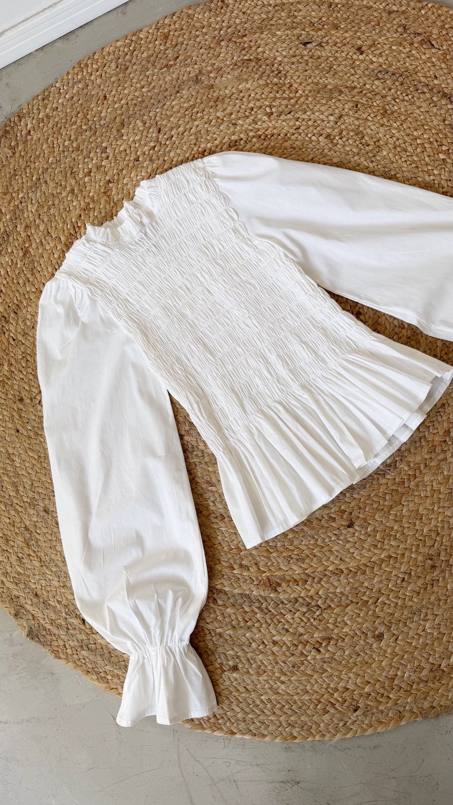 Descripción: Blusa de cuello redondo. Mangas largas con terminación de elástico. Detalle de bajo con volados.