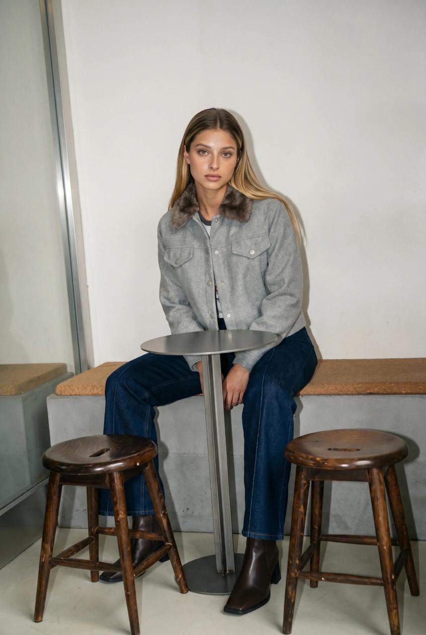 Descripción: Campera de cuello solapa con aplicación de efecto pelo. Cierre frontal con botones. Bolsillos delanteros decorativos. Forro interior combinado a tono.