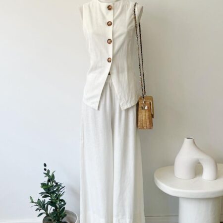 Descripción: chaleco de cuello redondo con botones en delantero.