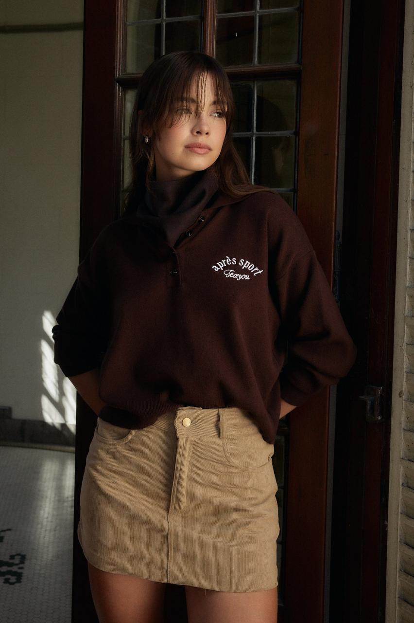 Descripción: Sweater de cuello subido con cierre. Mangas largas.