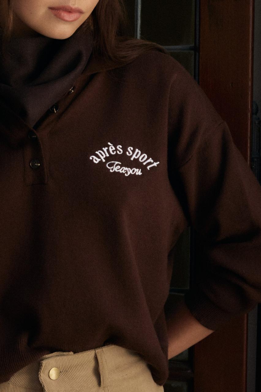Descripción: Sweater cuello solapa con mangas largas.