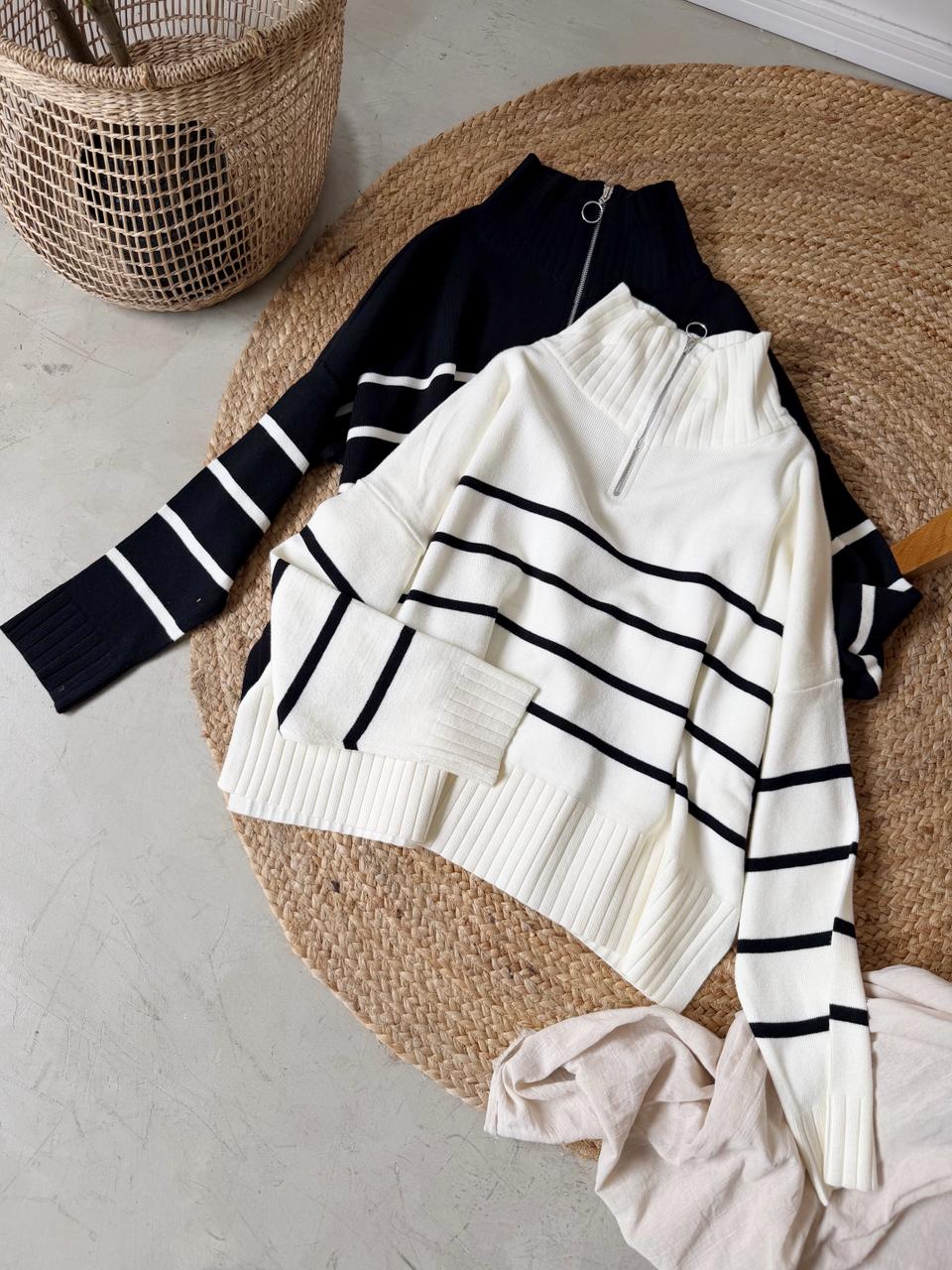 Descripción: Sweater de cuello subido con cierre. Mangas largas.