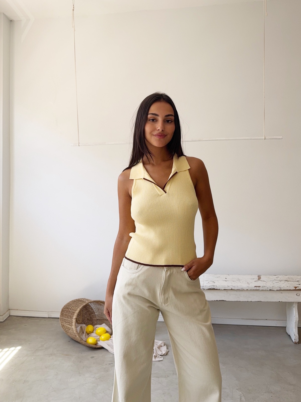 Descripción: chaleco de cuello redondo con botones en delantero.