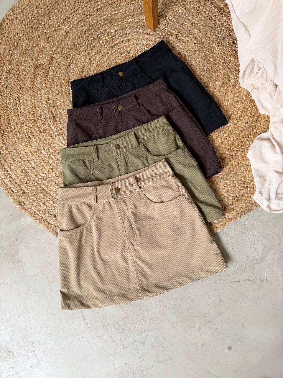 descirpcion: Mini de tiro alto. detalles de boton metalico y bolsillos delanteros.