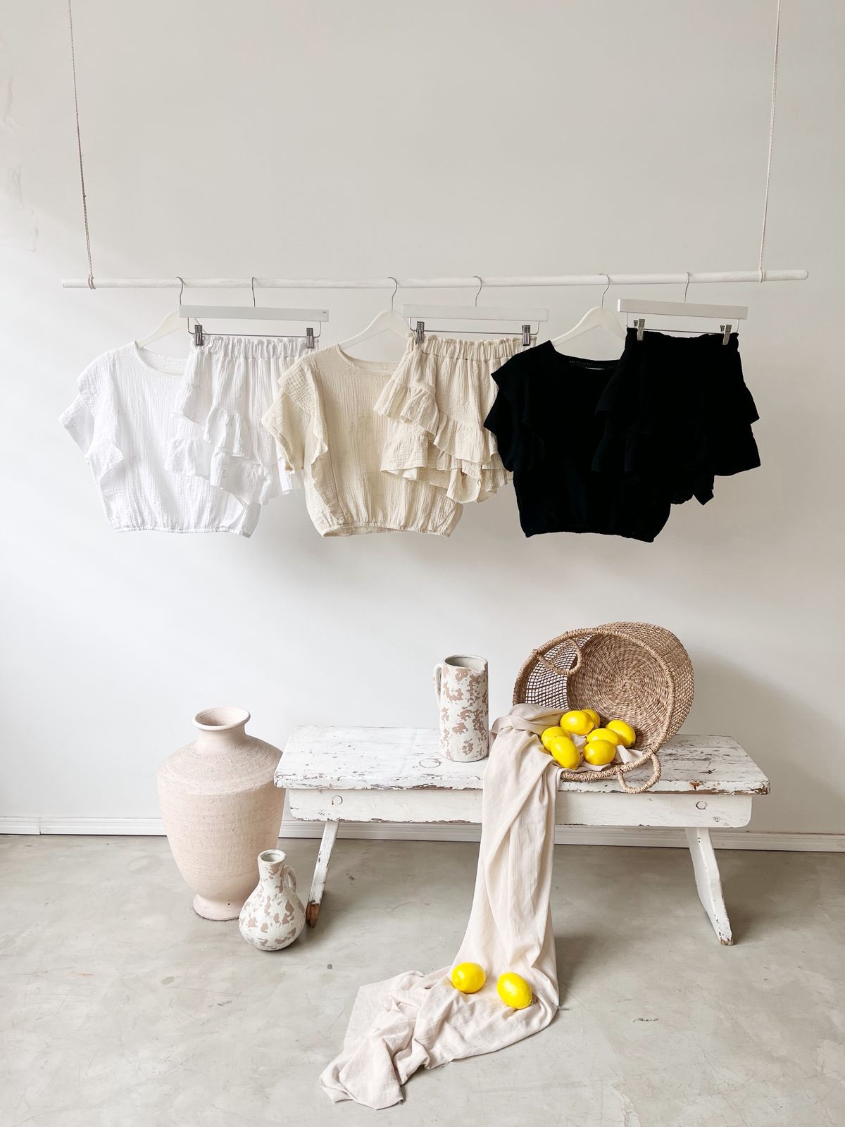 Descripcion: short de cintura elastica. Detalles de volados en bajos.