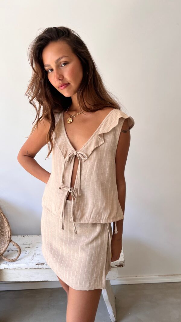 Descripción: Minishort corto con cierre lateral y cordon para atar.