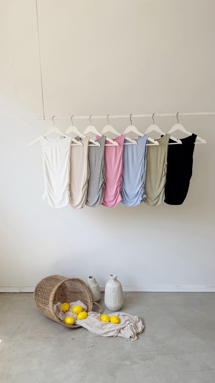 Descripción: Musculosa de cuello redondo. Detalles de frunce en laterales.