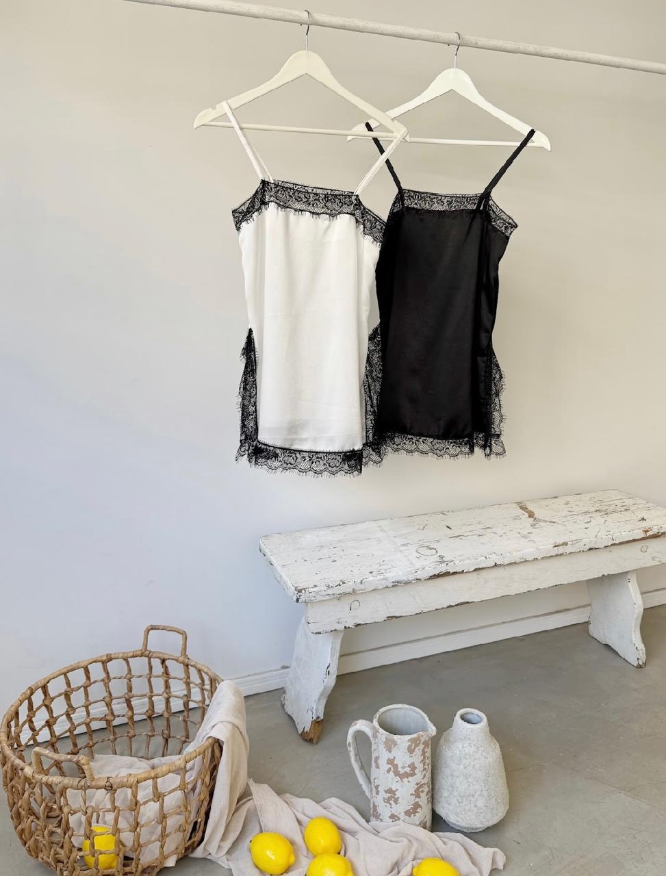 DESCRIPCION MUSCULOSA CON PUNTILLAS EN ESCOTE Y TAJOS DE LOS COSTADOS
