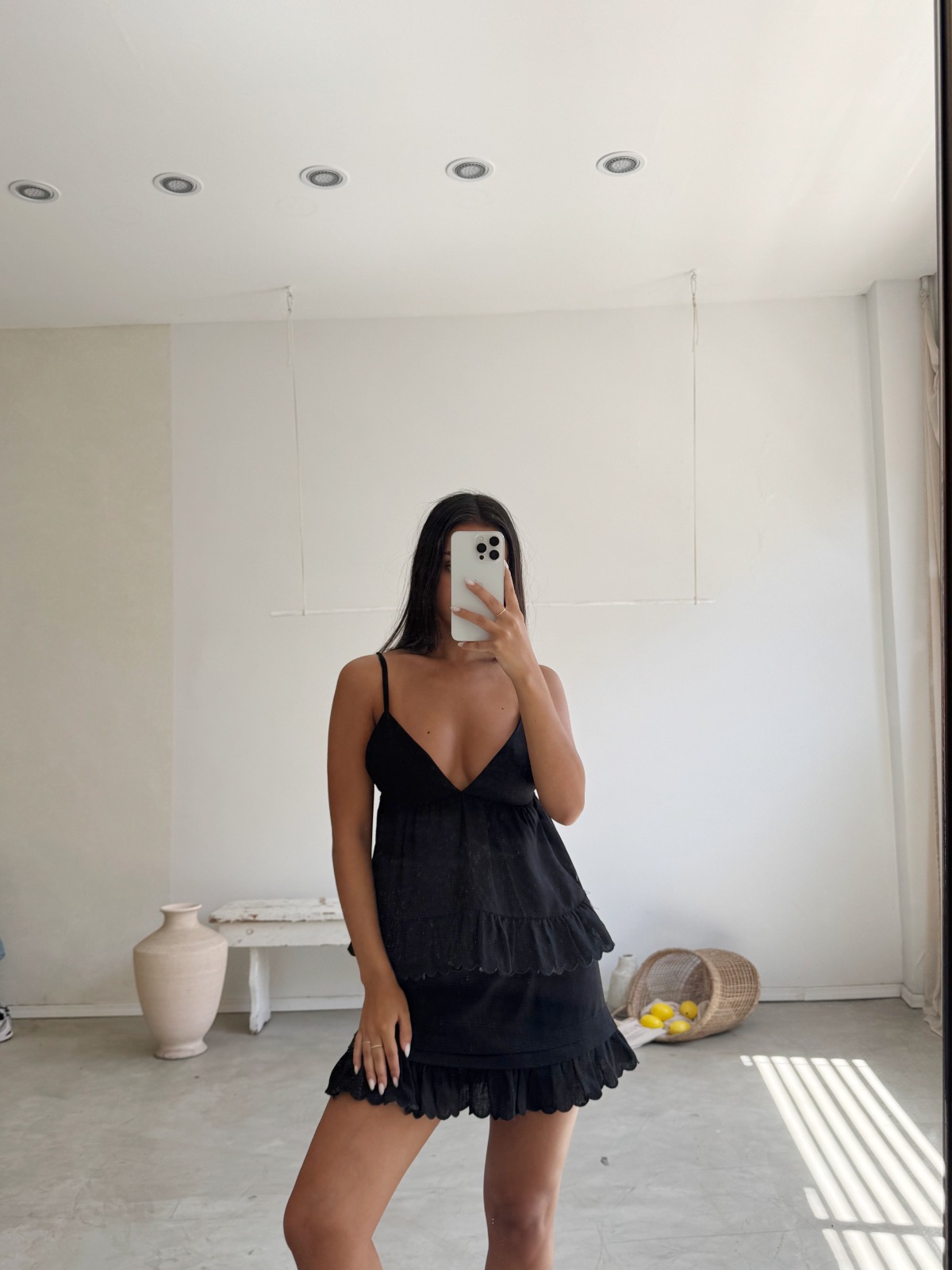 Descripción: Maxivestido con tirantes finos. Detalle en busto de elástico y mini voladito.