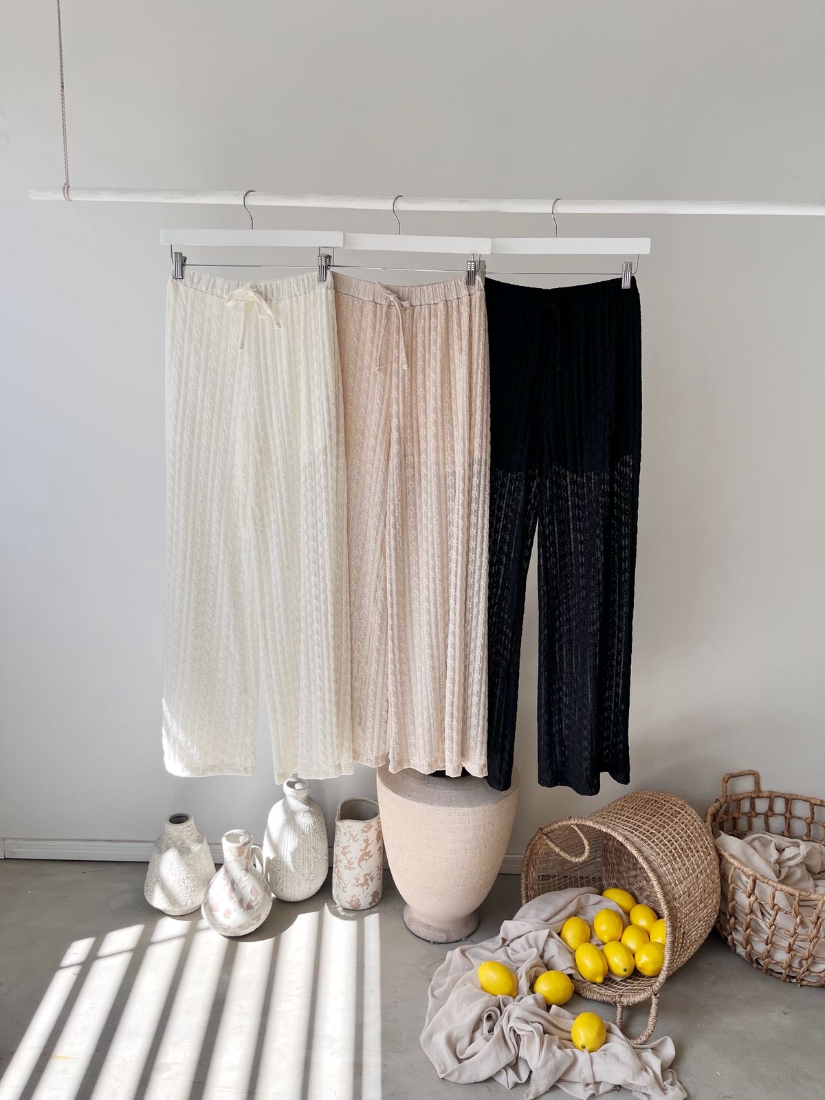 Descripción: Pantalón de tiro alto con cintura elastizada. Cordon en delantero decorativo. Interior forrado a tono.