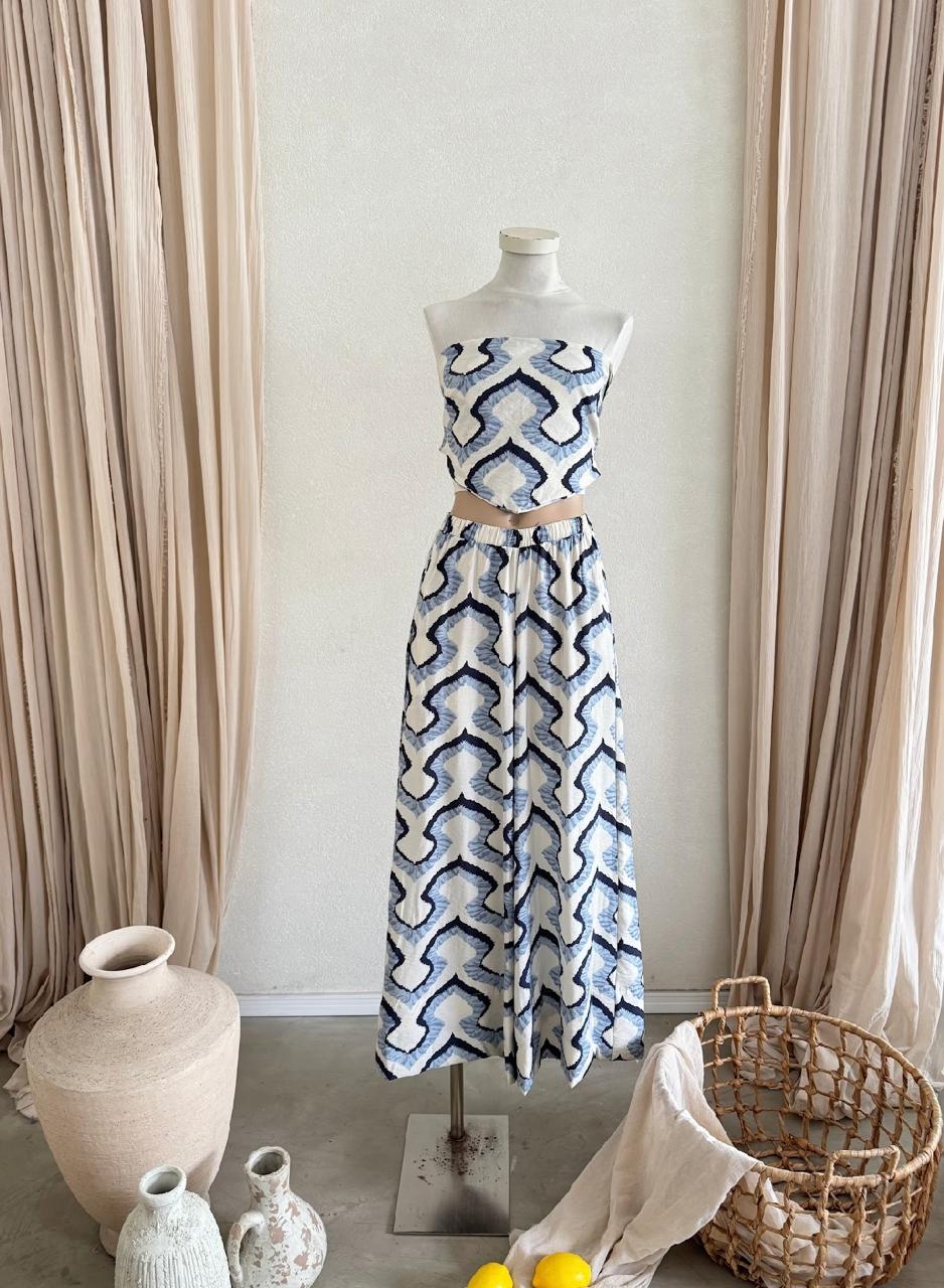 Descripcion: Pantalón con ruedo ancho estampado.