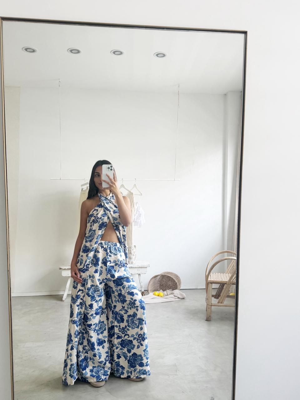 Descripción: Pantalón de ruedo ancho con cintura elastizada.