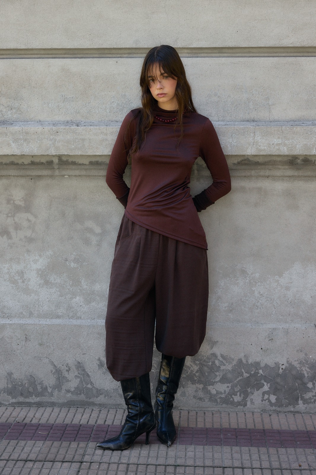 Descripcion: Pantalón corte balloon con pinzas en el ruedo.