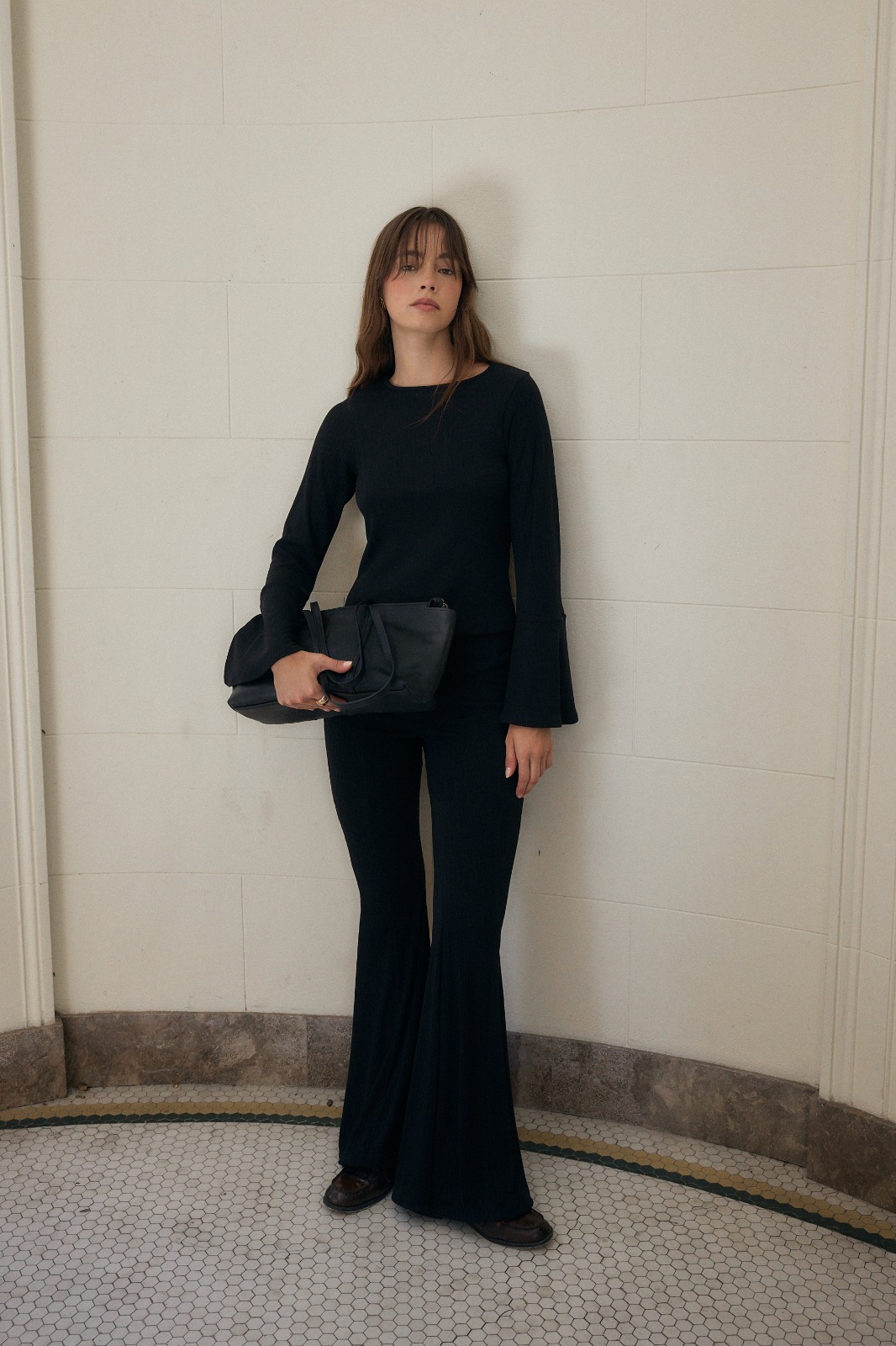 Descripcion:Pantalón largo con terminación evase en ruedo.