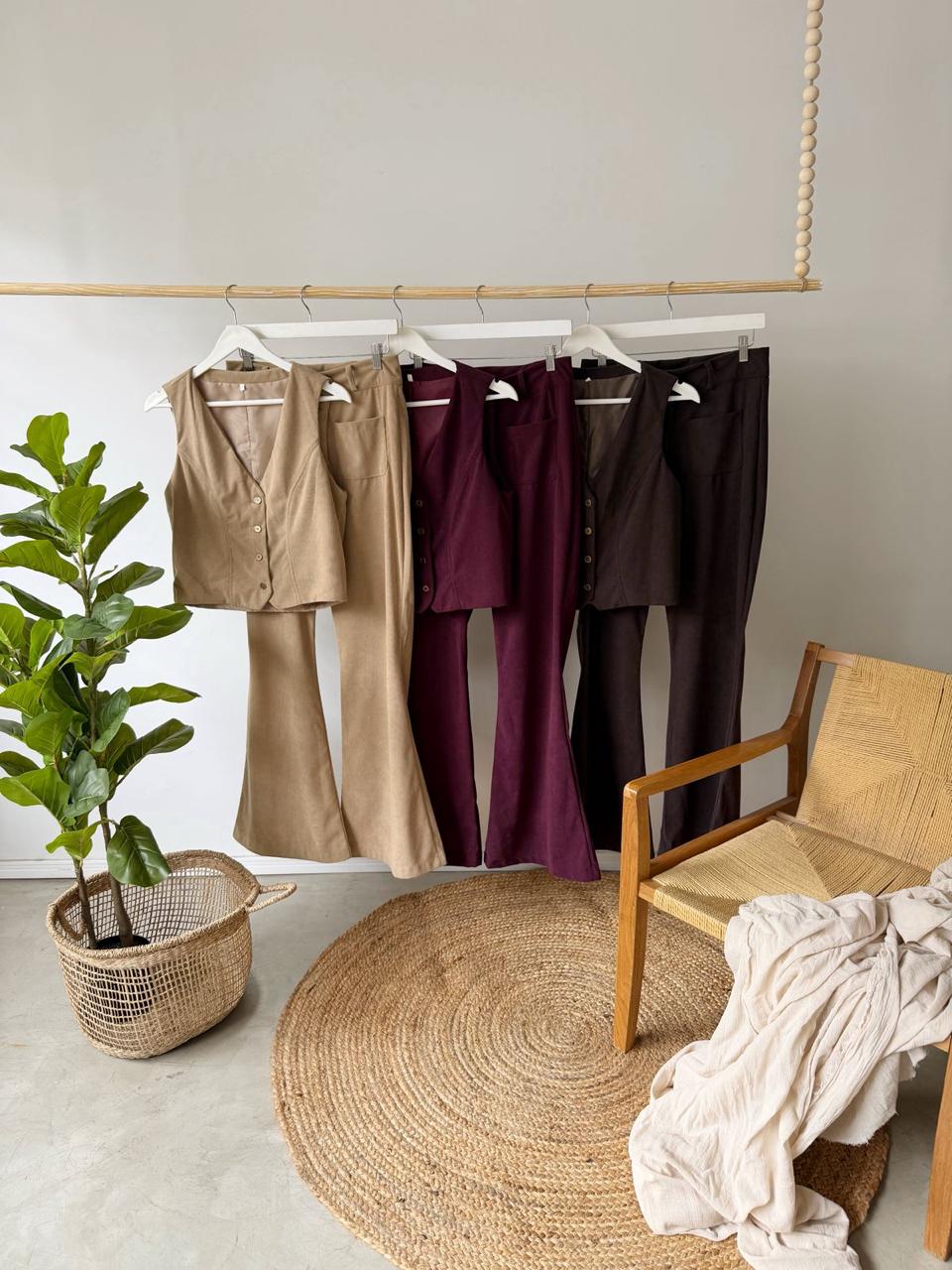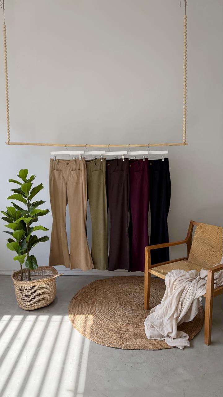 Descripcion: Pantalon de corderoy con evase en el ruedo, cierre y boton.Bolsillos delanteros.