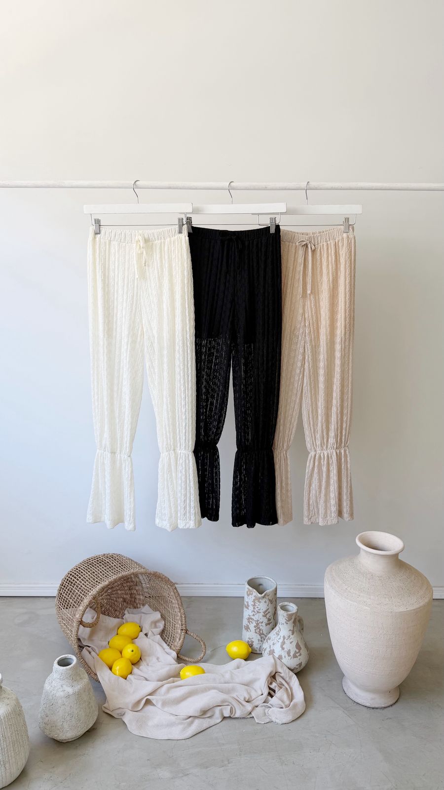 Descripción: Pantalón corte aladdin con cintura elástizada. Detalle de cordón decorativo. Bajo con elástico interior.