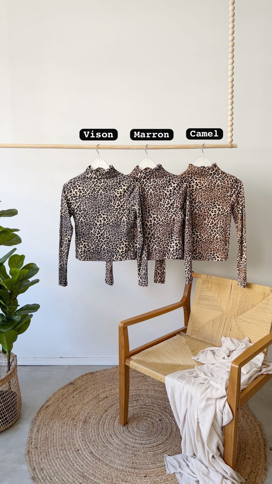 Descripción: Polera de cuello subido. Mangas largas. Estampado animal print.