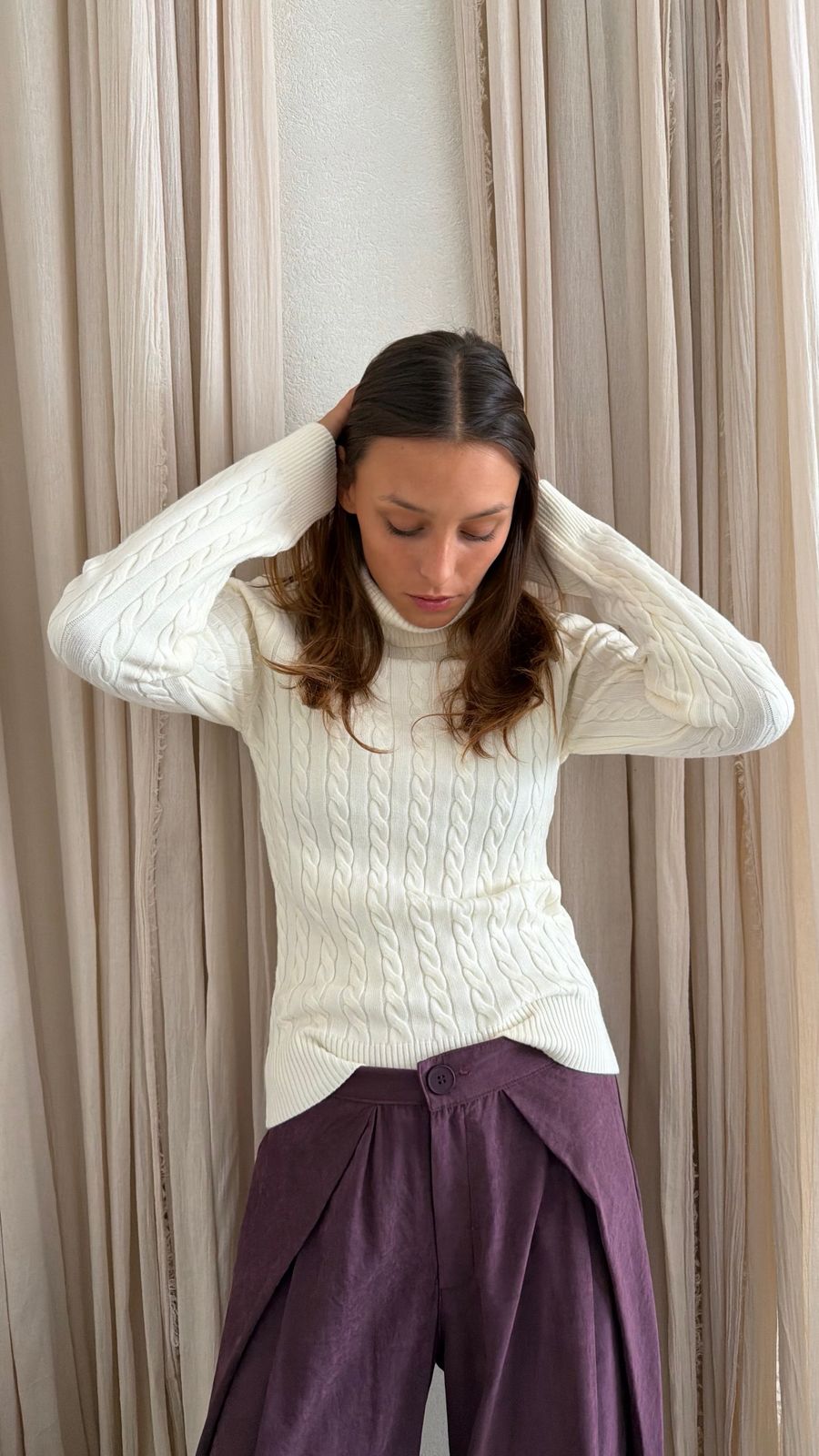 Descripción: Polera de cuello subido con detalle de trenzado. Mangas largas terminadas en puño.
