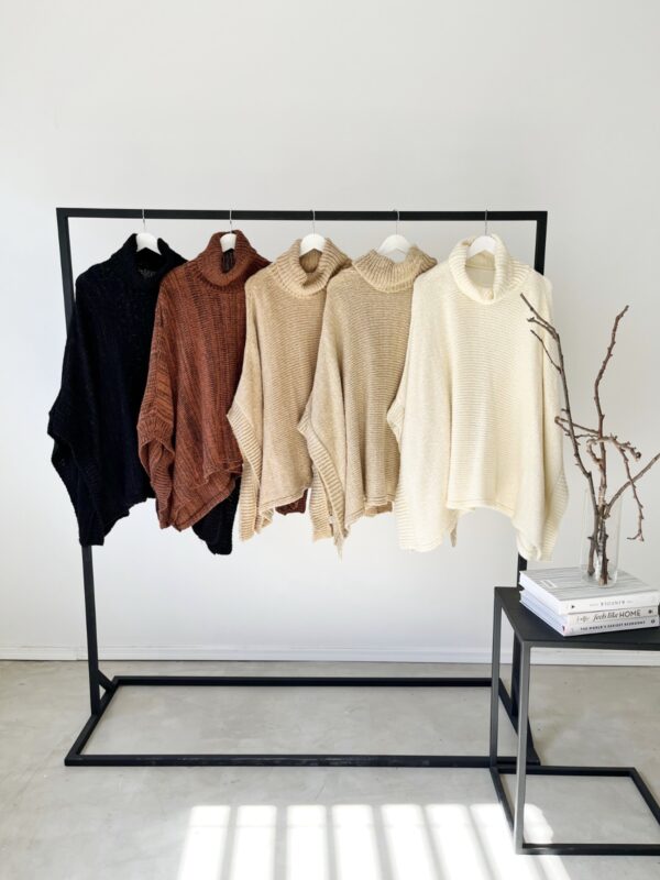 Descripción: Capa tejida con cuello subido.
