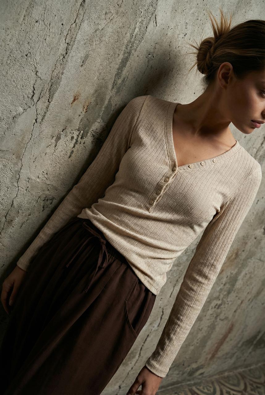 Descripcion: Remera manga larga de mulberry con mangas en terminación evase.