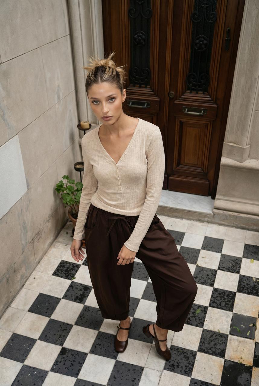 Descripcion: Pantalón corte aladdin amplio, con elastco en la cintura y en los puños.