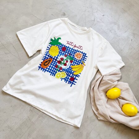 Descripción: Remera de cuello redondo y manga corta. Detalle de texto y estampación.