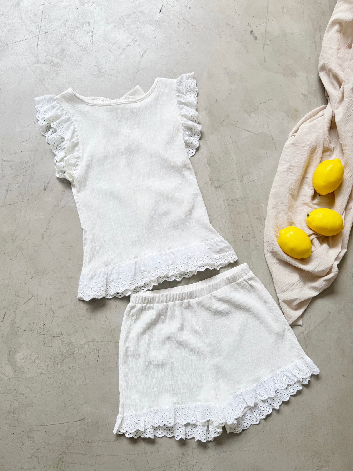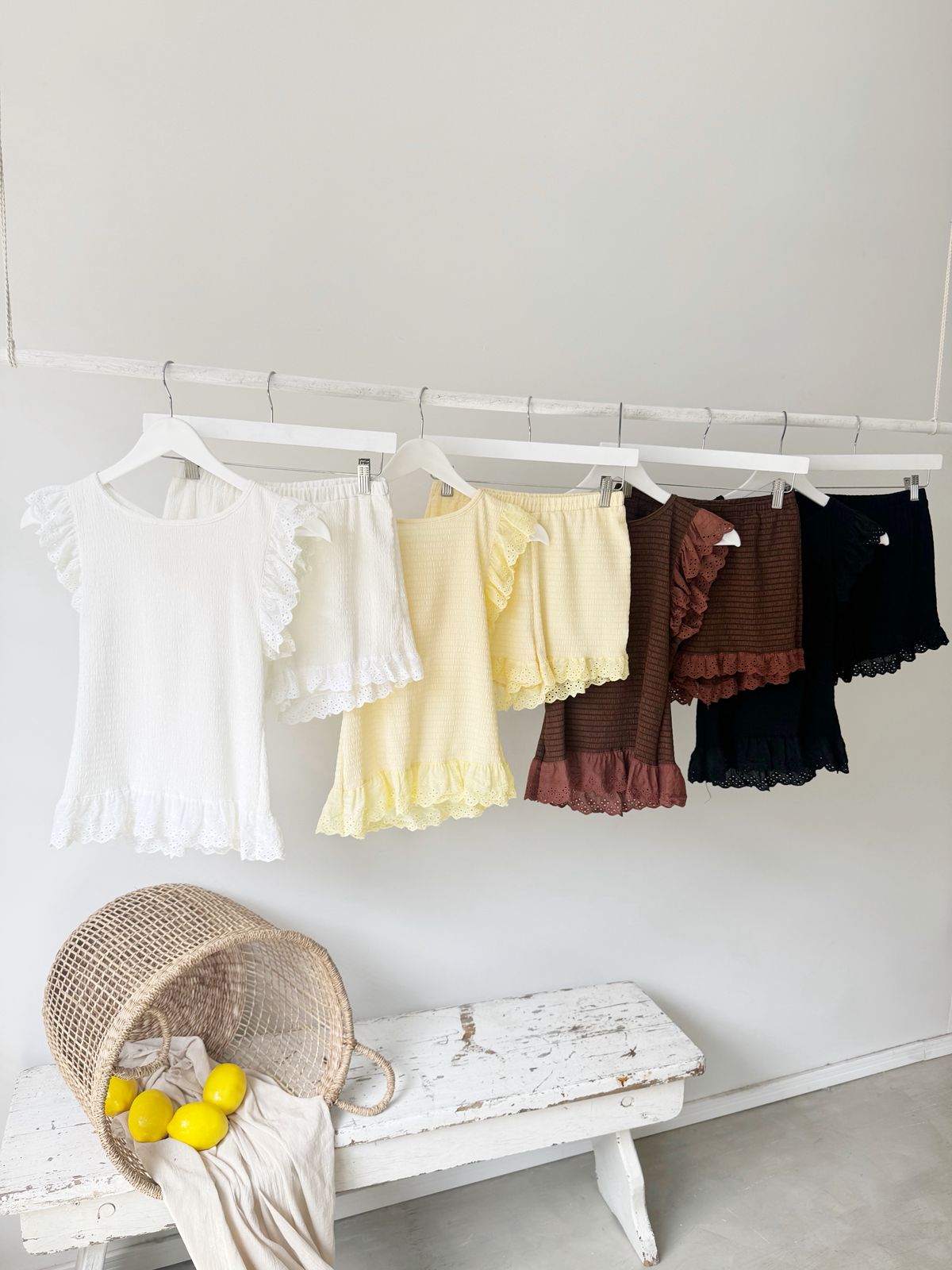 Descripción: Short corto con cintura elástizada. Detalle de puntilla en bajo.