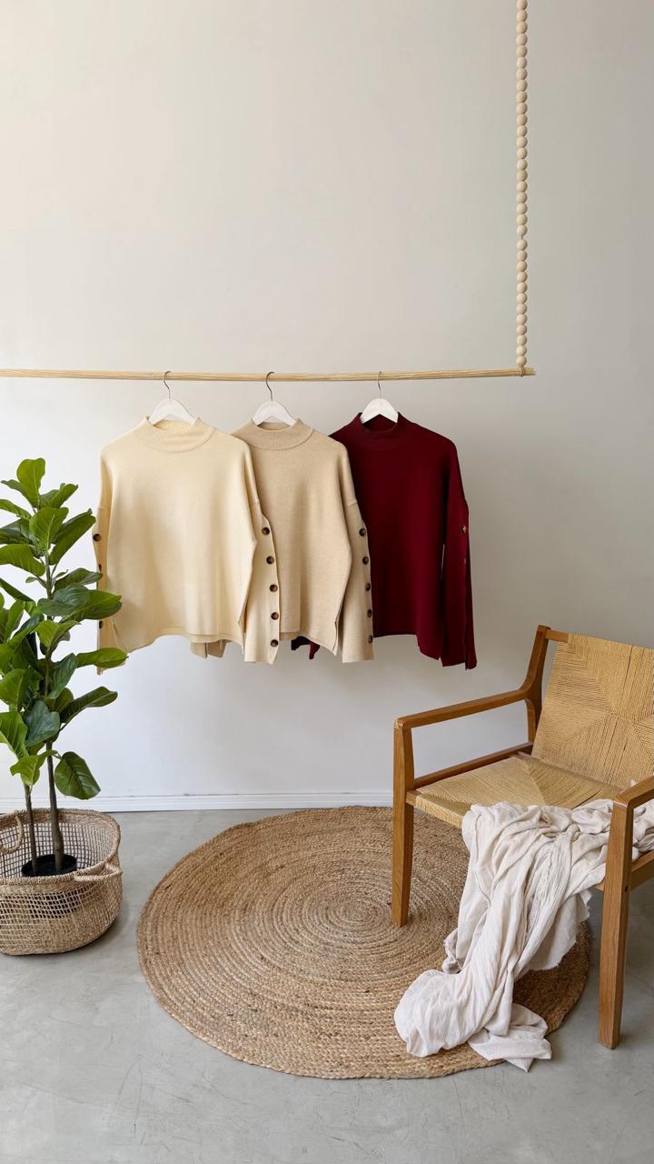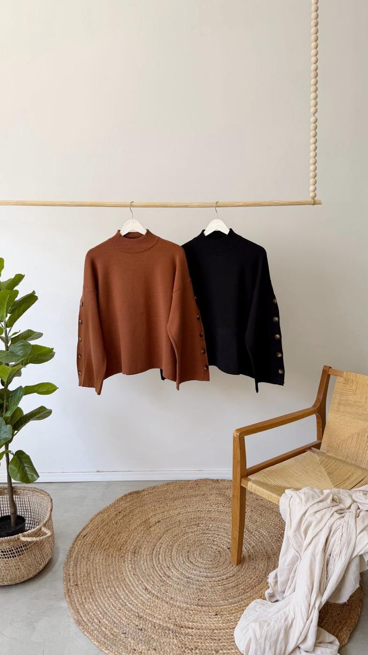 Descripción: Sweater de cuello redondo y mangas largas con detalle de botones.
