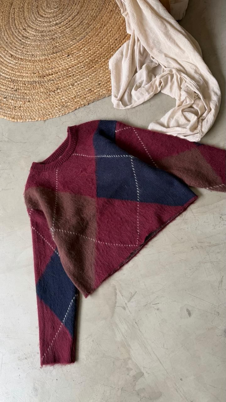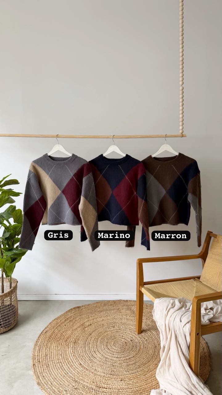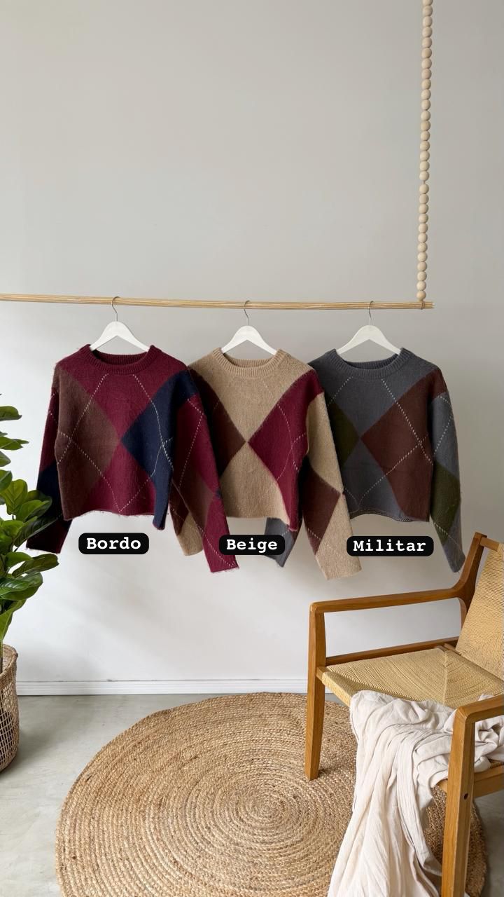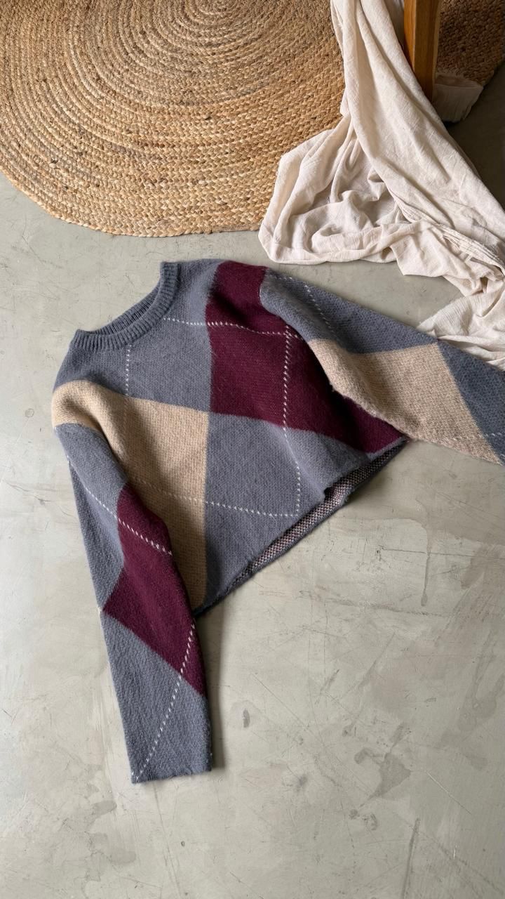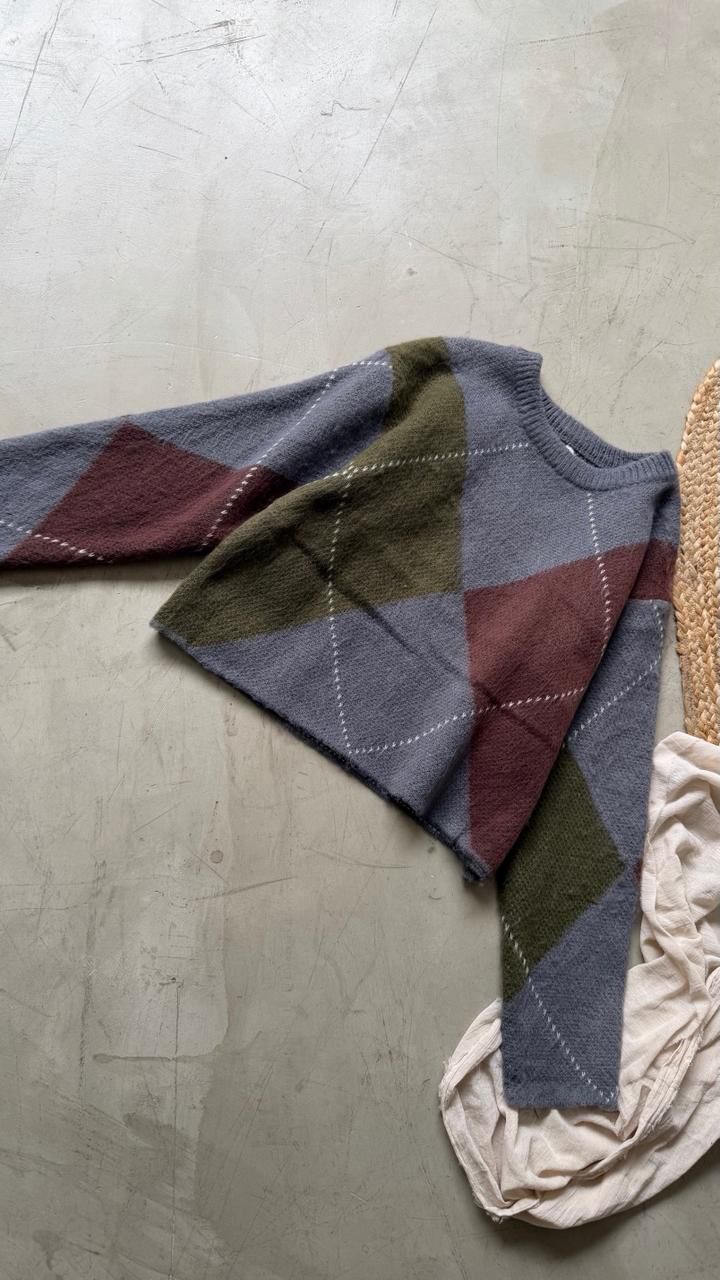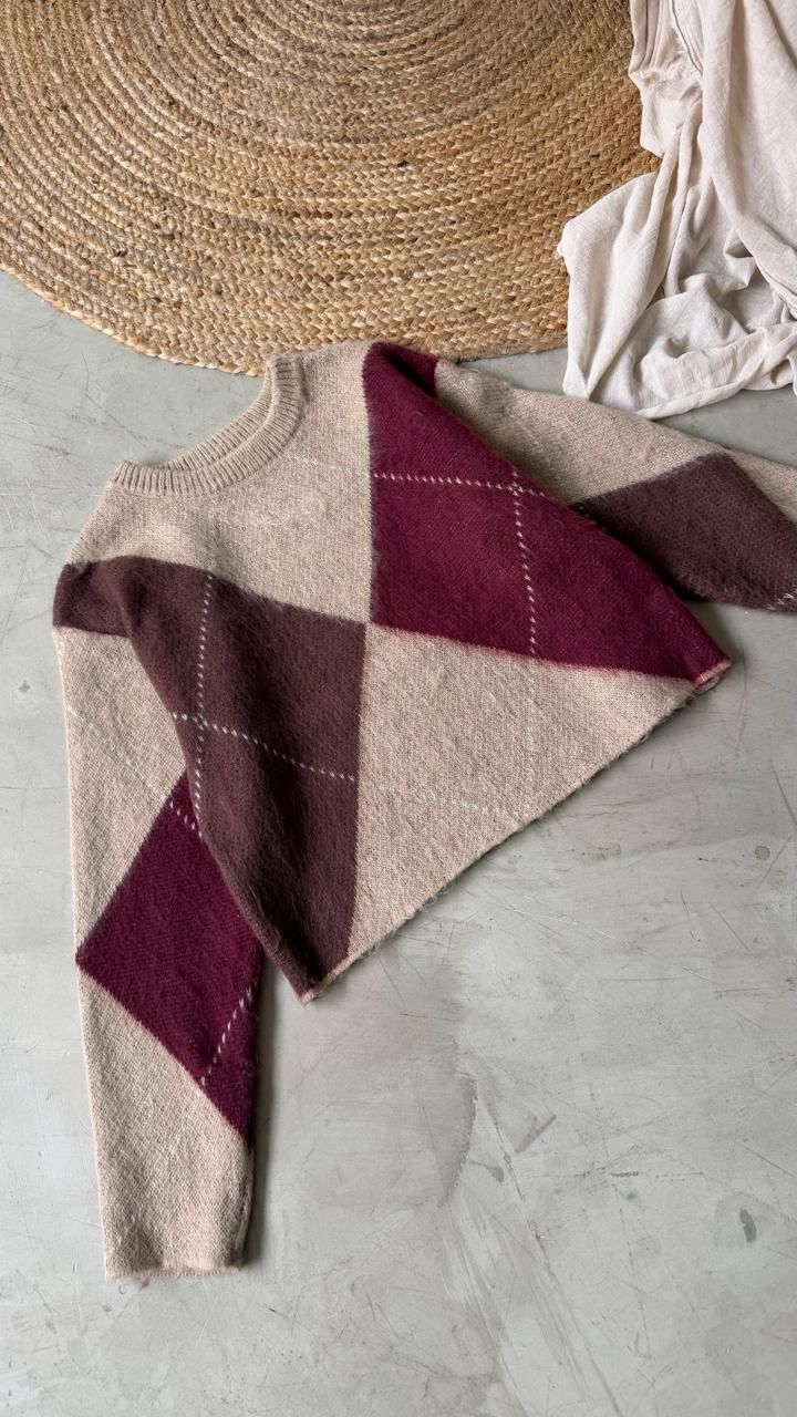 Descripción: Sweater de cuello redondo y mangas largas con dibujo en rombos.