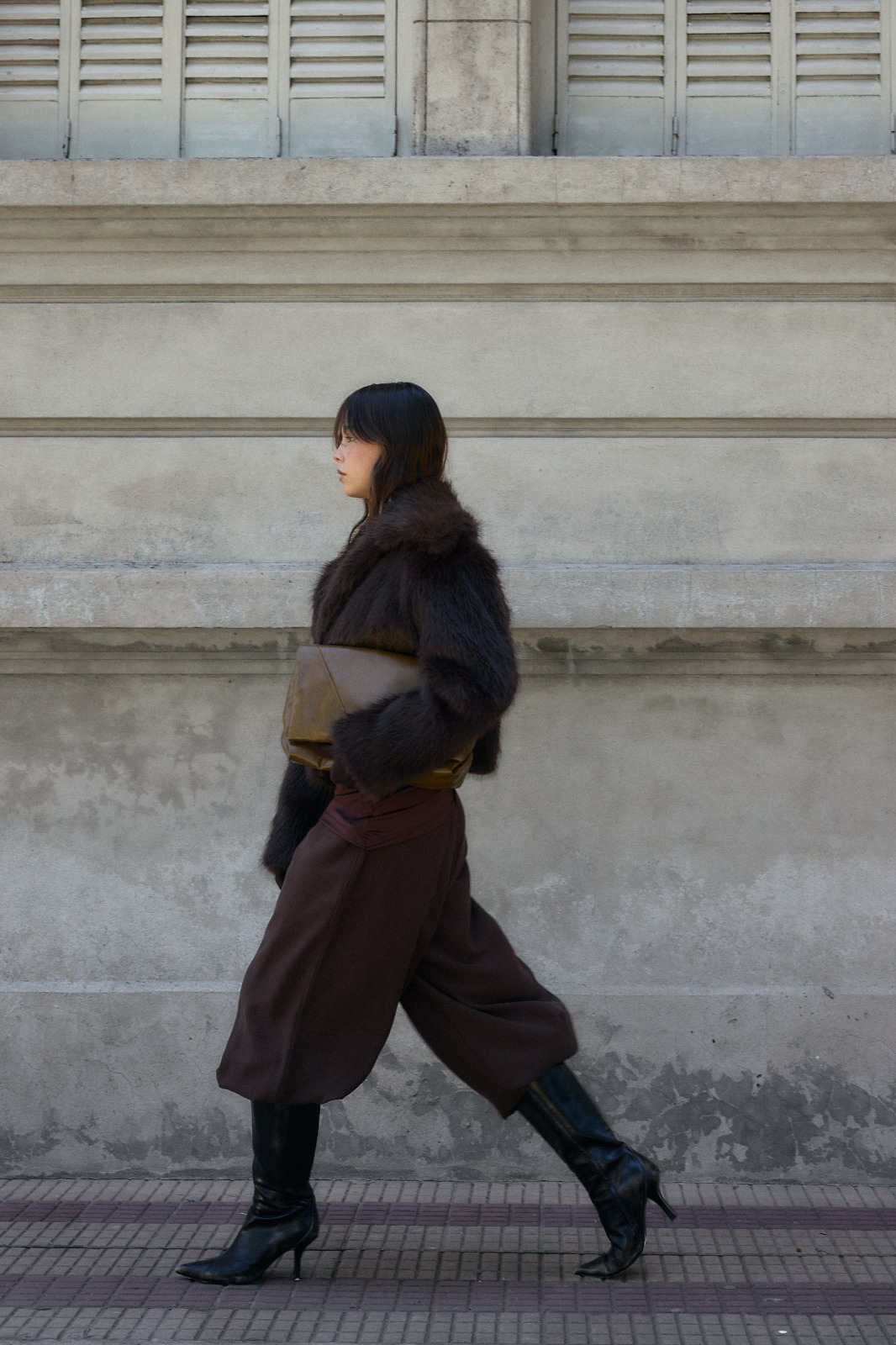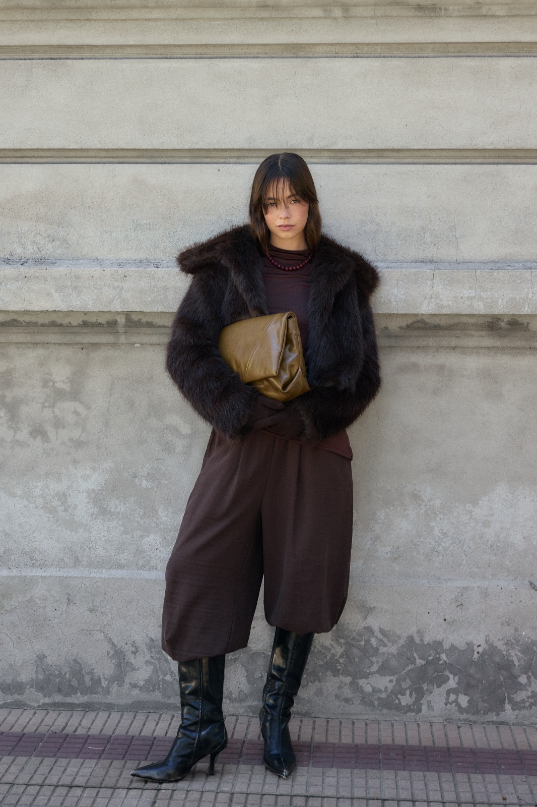 La modelo lleva un talle unico en color marron.