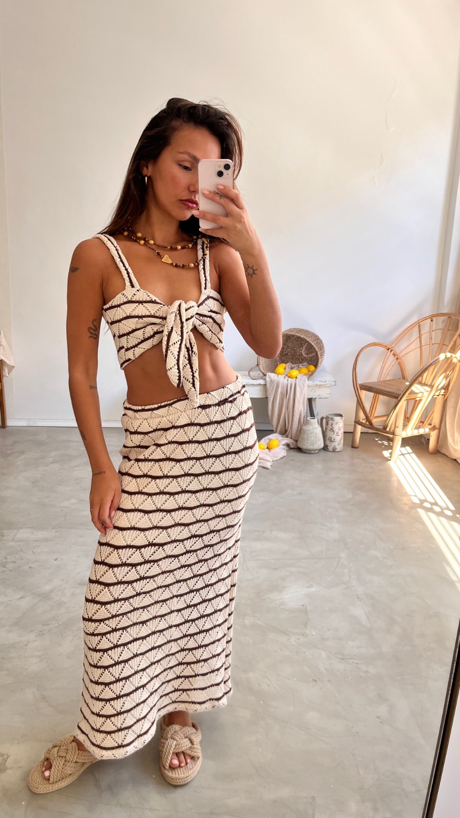 Descripción: Top crop con tiras para atar en delantero. Forro interior.
