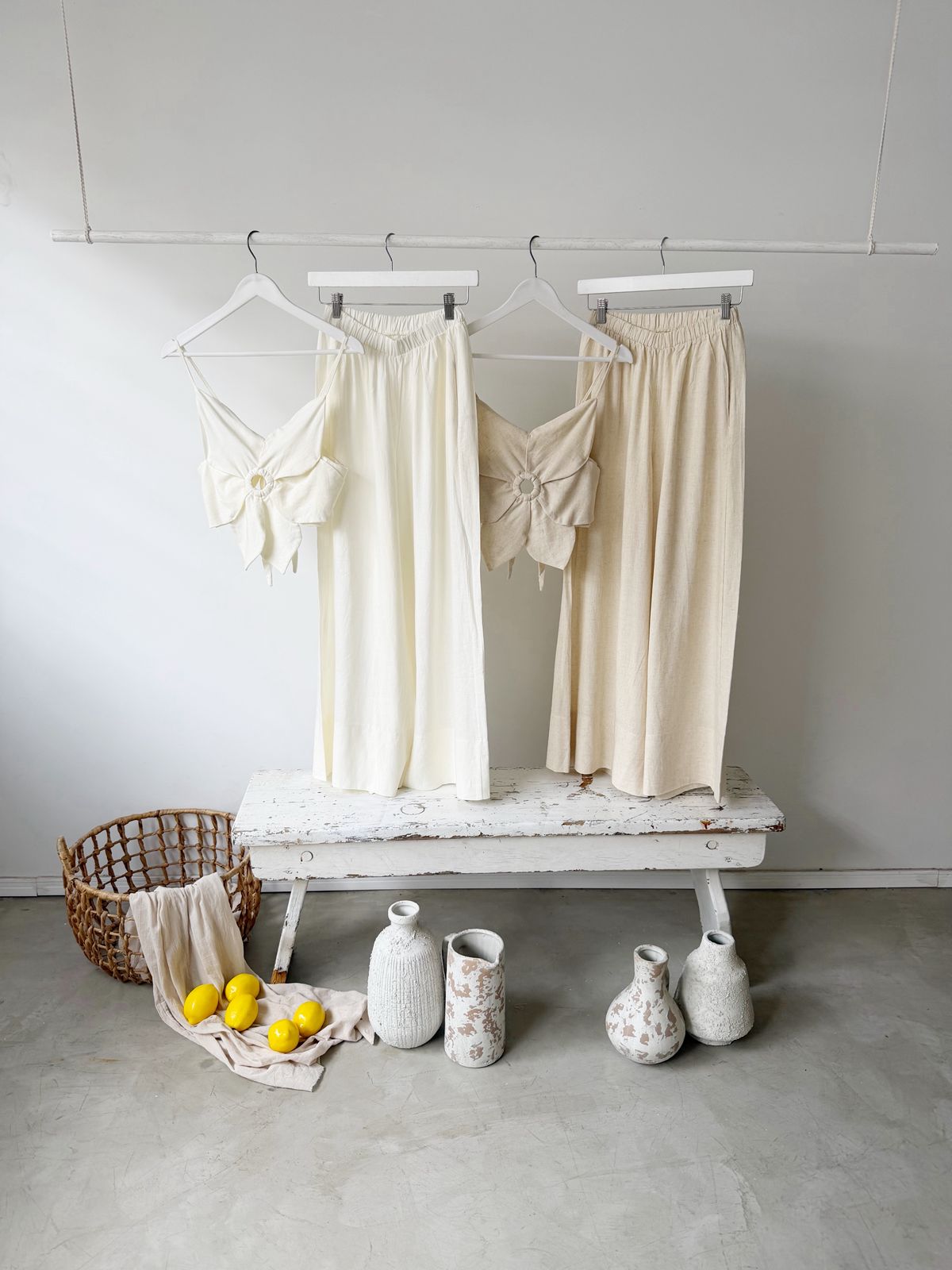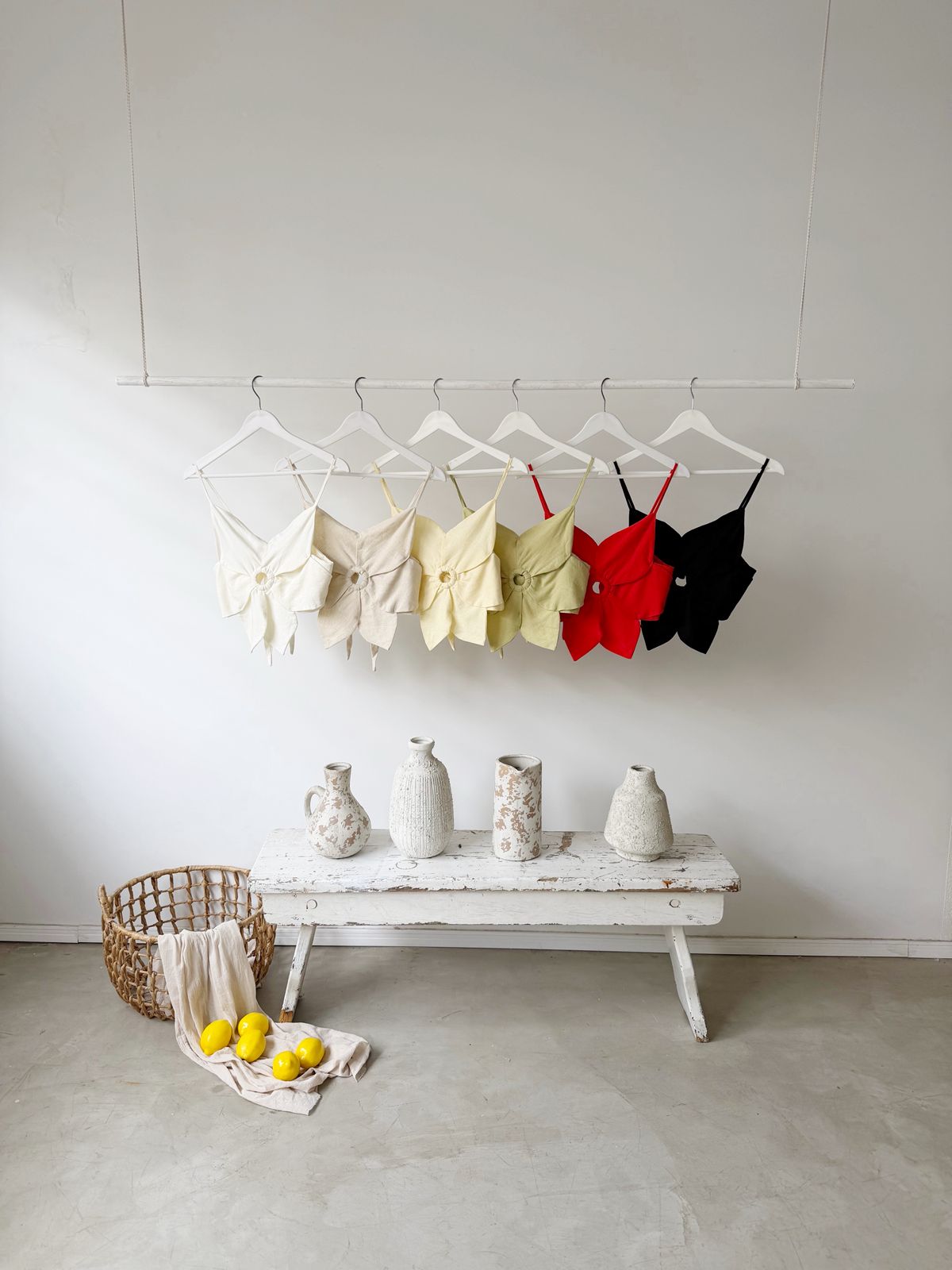 DESCRIPCION: TOP CON FORMA DE FLOR Y UN ARO EN EL CENTRO QUE SOSTIENE LOS