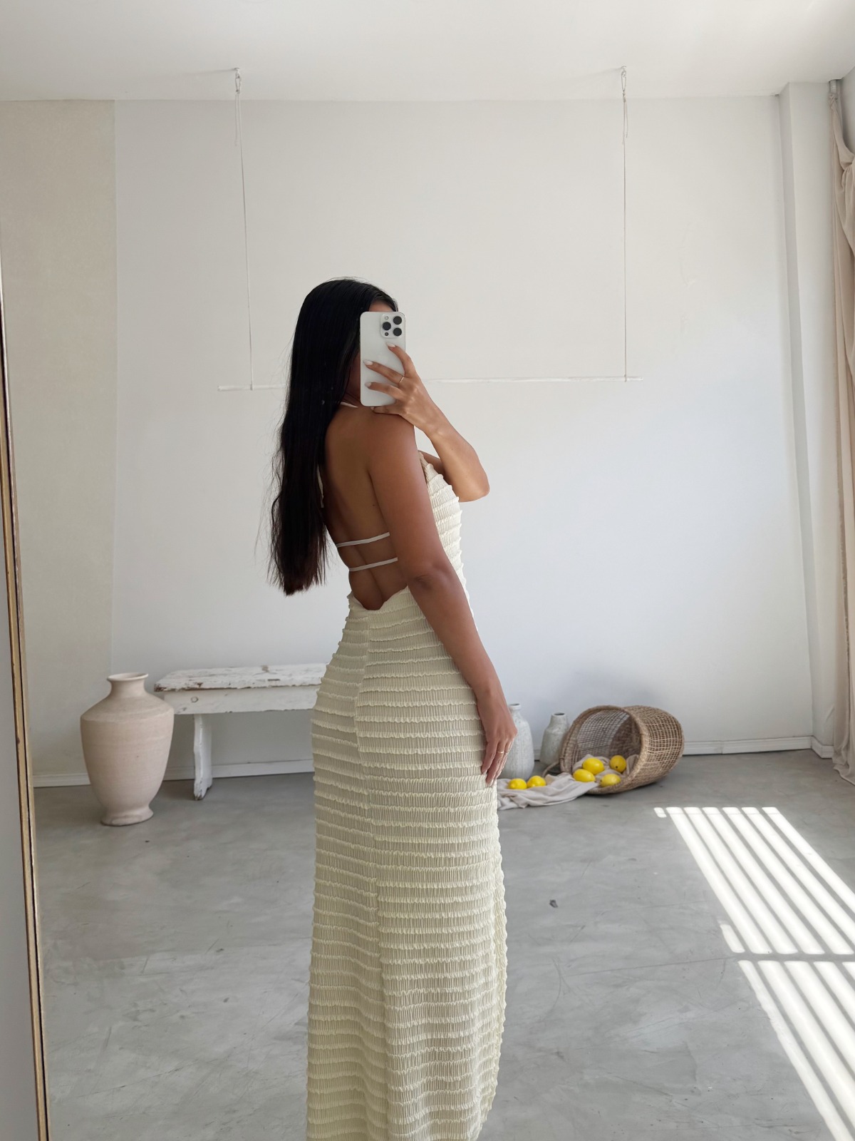 DESCRIPCION. VESTIDO DE TELA DE VOLADITOS CHIQUITOS Y ELASTICO BRETEL EN LA ESPALDA