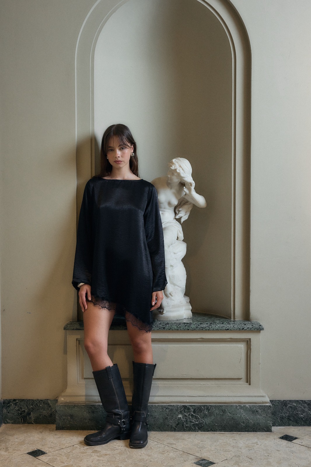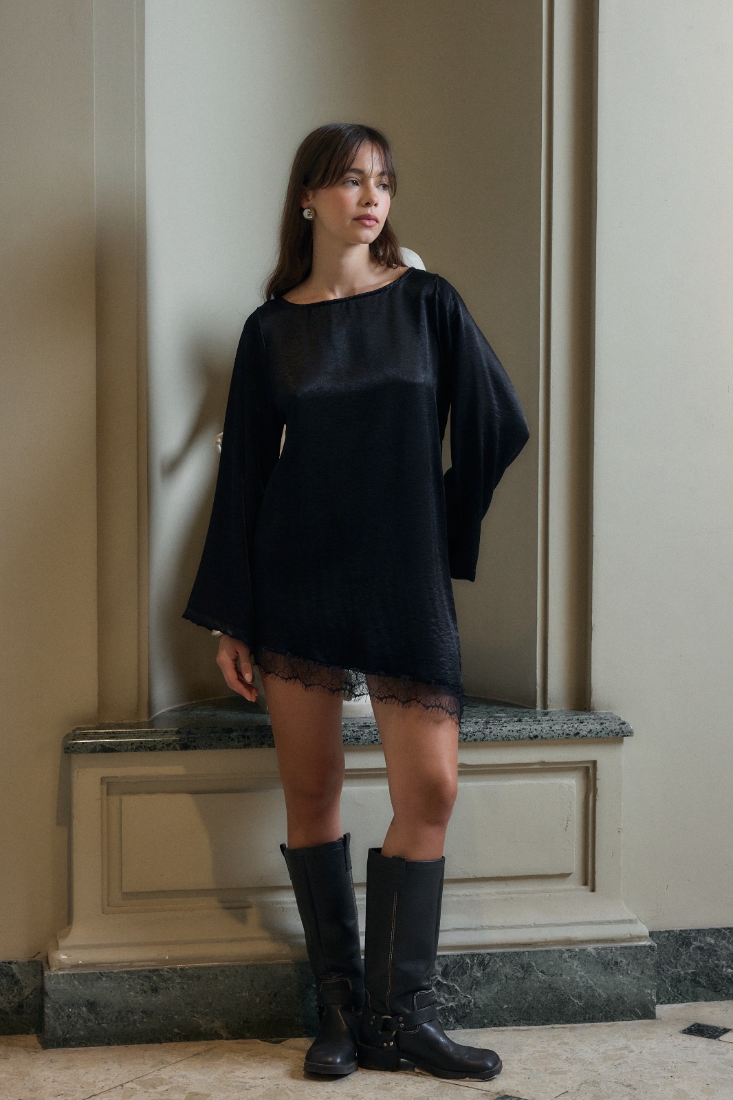 Descripcion: Vestido con puntilla en el ruedo y mangas amplias.
