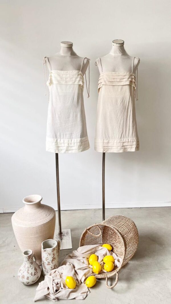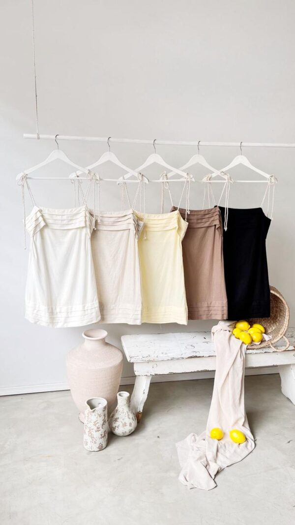 Descripción: Vestido corto de escote recto. Forro interior en busto combinado a tono. Tiras en hombros regulables. Detalles en bajo y busto.