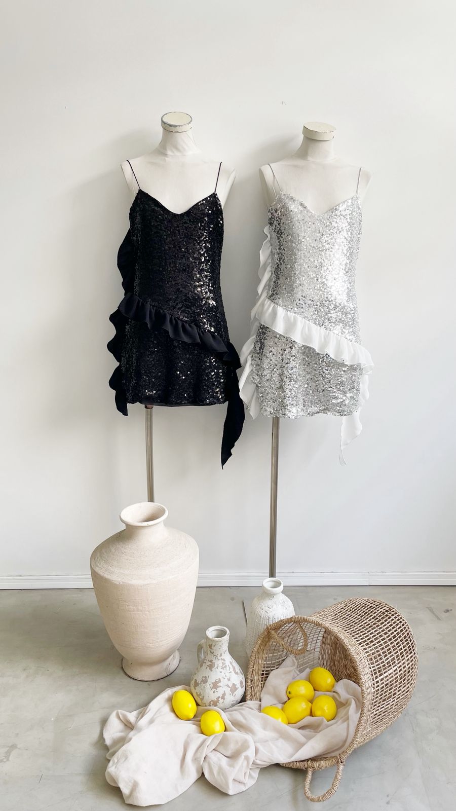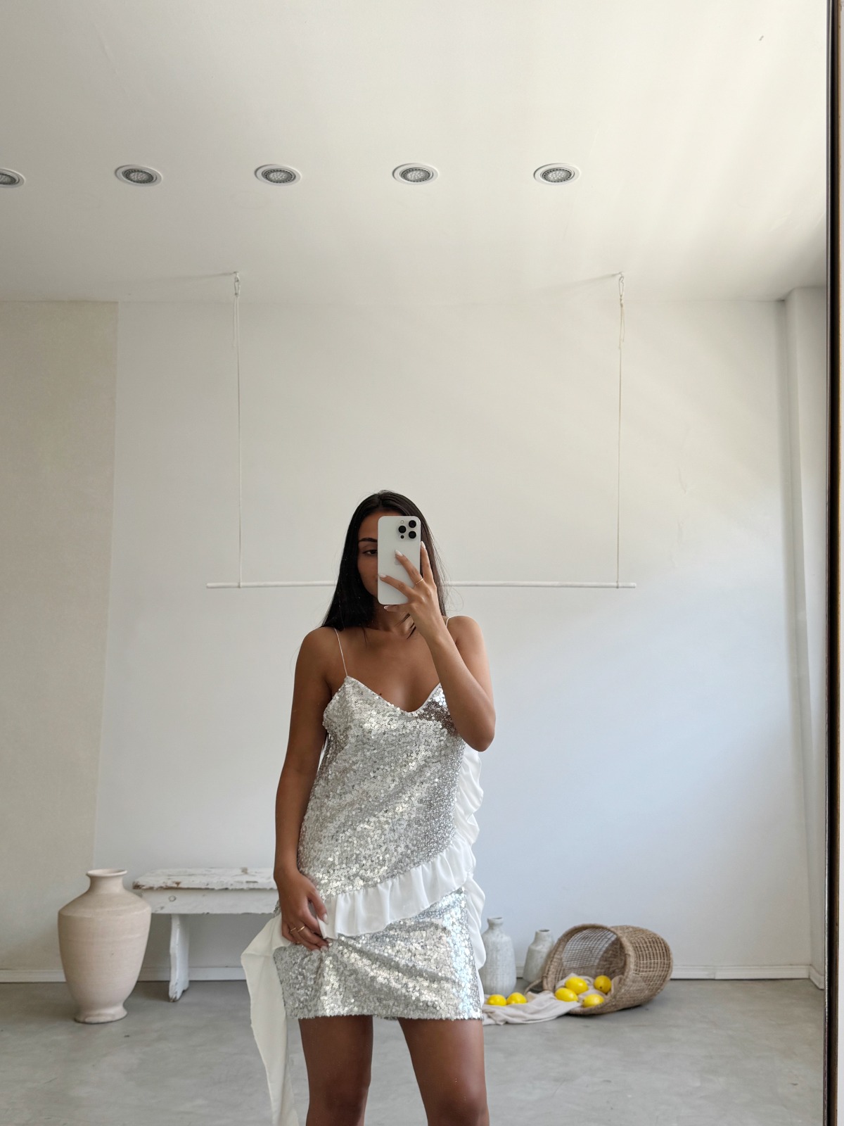 Descripción: Vestido corto. Detalles de volados. Forro interior combinado a tono.